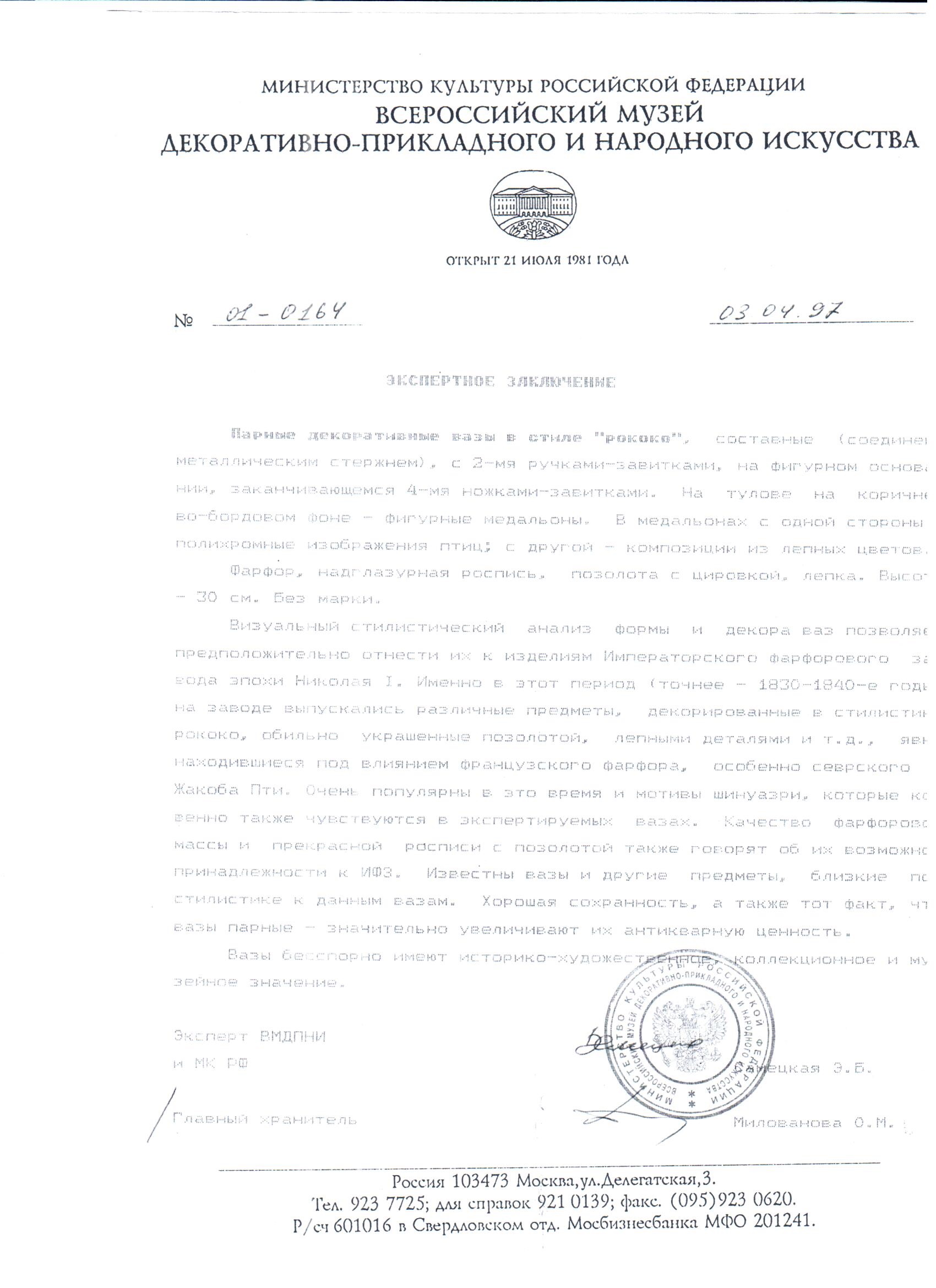 Вазы бесспорно имеют историко-художественное, коллекционное и музейной значение.